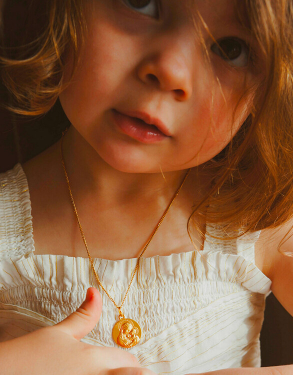 Cette médaille de baptême en or 18 carats, création exclusive de la Maison de la Médaille est une superbe évocation du tableau de Sandro Boticelli exposé au Musée Fesch d’Ajaccio. La Vierge, les yeux fermés en signe de plénitude prend dans ses bras l’enfant Jésus qui lui est offert et qui la regarde tendrement. Cette médaille empreinte d’un grand réalisme de par ses détails rehaussés par l’éclat de l’or traduit un vrai moment de tendresse. L’offrir c’est placer de manière symbolique l’enfant sous la protection Mariale. Modèle déposé